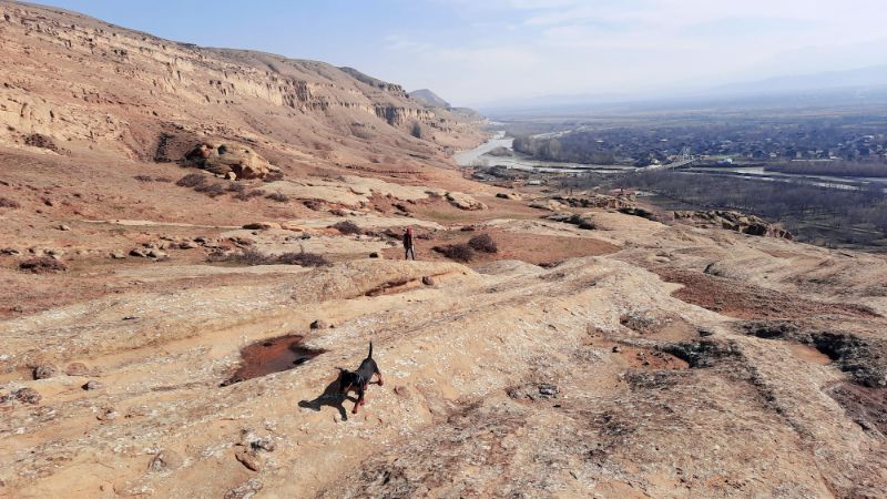Und: Wir sind aufs Land gezogen! 45 Min. westlich von Tiflis leben wir jetzt in den Ausläufern des Trialetigebirges. Eher zufällig entdeckten wir, dass wir nochmals 40 Min. weiter westlich bereits bei der ehemaligen Höhlenstadt Uplisziche sind, deren Anfänge ins 2. Jt. v. Chr. zurück reichen. Eine wunderbare Landschaft